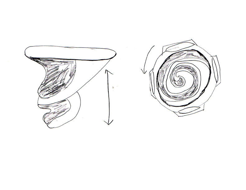The Running Spiral is a toy intended to teach children the basic principles of cause and effect as well as wind resistance. The toy is held in any way that allows for movment to generate wind resistance. As wind passes through the center, the spiral spins and depending on speed either spins fater or slower. The spiral also elogates as depending on how much air is passing through it. The outer ring would be made or a hard plastic so it would be harder to break while the center would probably be made of a very flexible and light plastic so that wind could actually effect it. I do not know enough about plastic to theorize how much this would cost to do since assembly could be difficult, but based on the materials alone, it would be relativly inexpensive.
